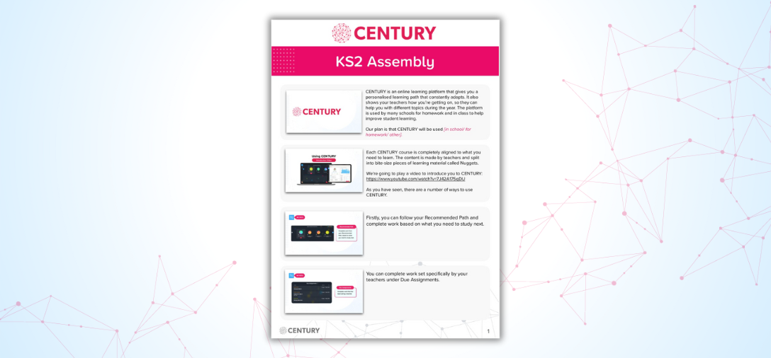 Home Get Primary Students Started on CENTURY Get Primary students started on CENTURYFirst impressions count, find materials here to use in your introductory sessions for students Play this video to introduce students to CENTURY Use these slides to introduce students to CENTURY KS2 assembly slides KS2 assembly plan Print this PDF to show students how to log in